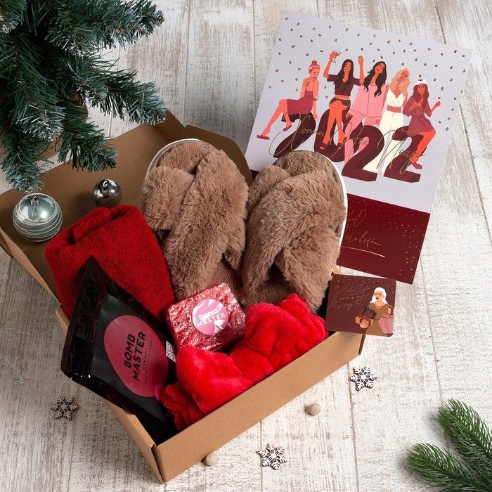 Подарочный набор новогодний Этель «Хэппи нью Йеар» полотенце 30х60см и аксессуары (4 предм)