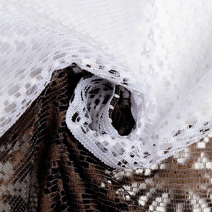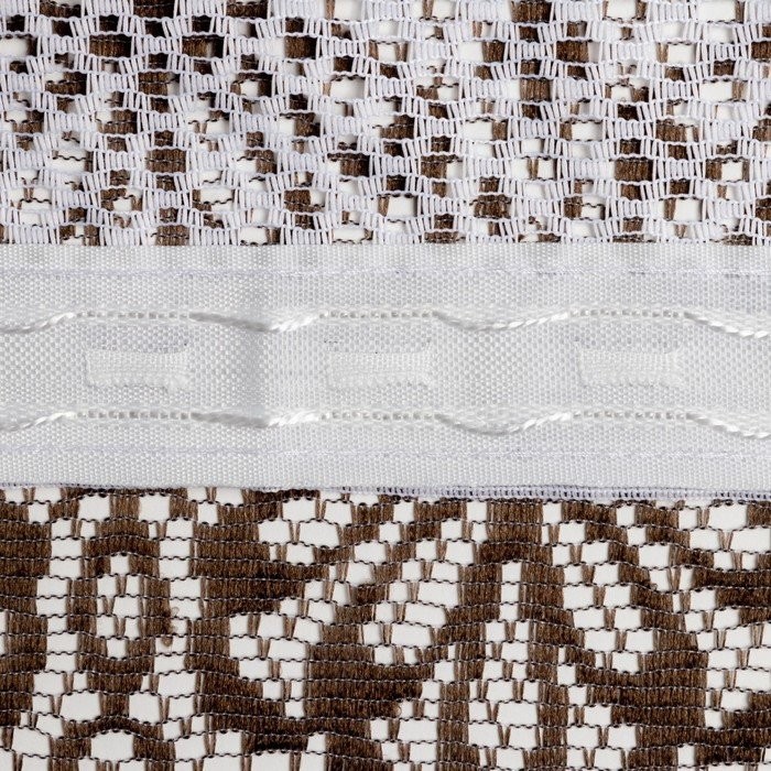 Тюль кухонная со шторной лентой, 145×275 см, цвет белый с коричневым, пэ