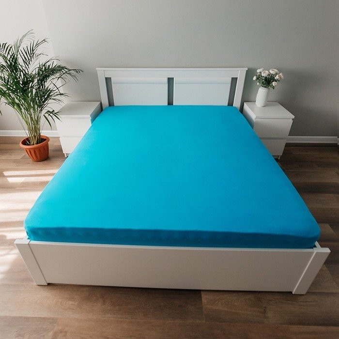 Трикотажная простынь на резинке 140х200х25см, синий кулирка, 120г/м хл100%