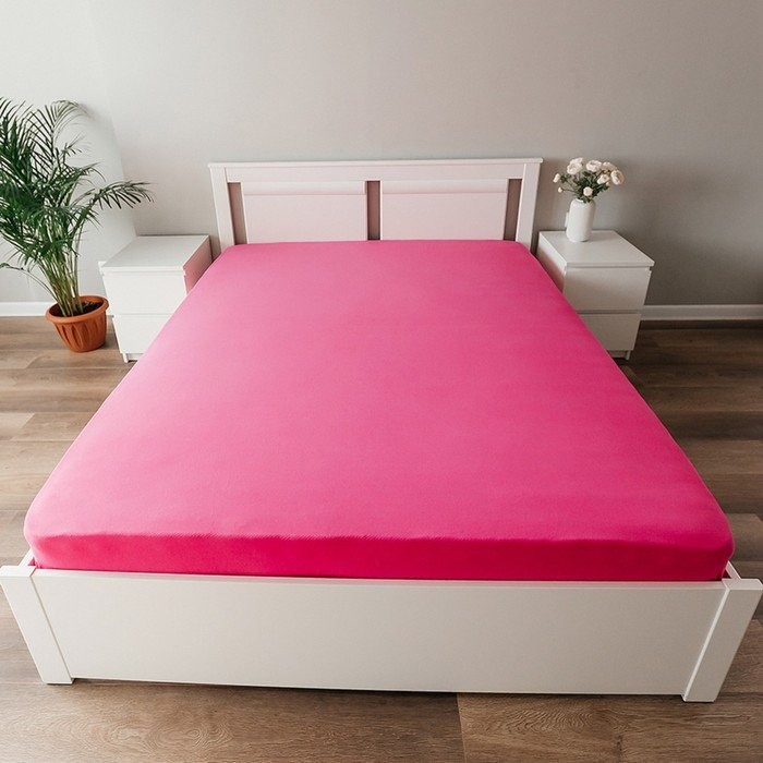 Трикотажная простынь на резинке 120х200х25см, фуксия кулирка, 120г/м хл100%