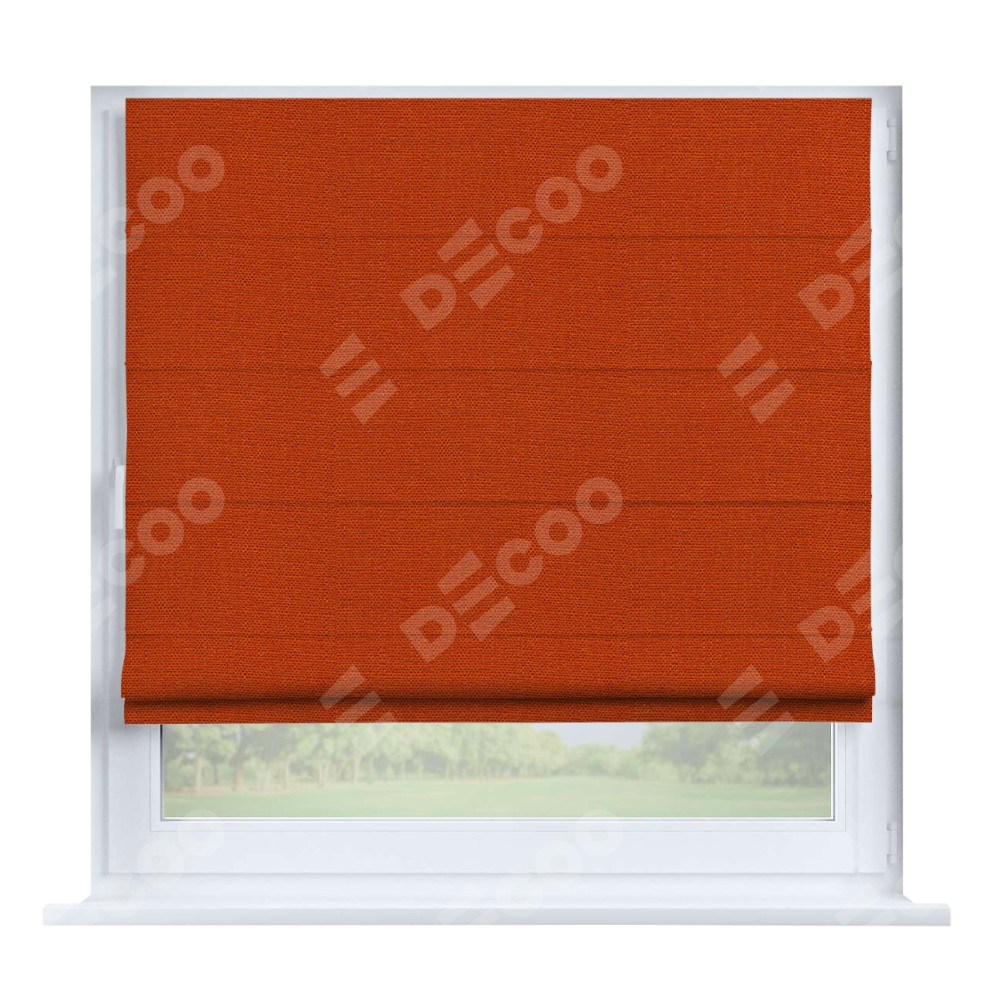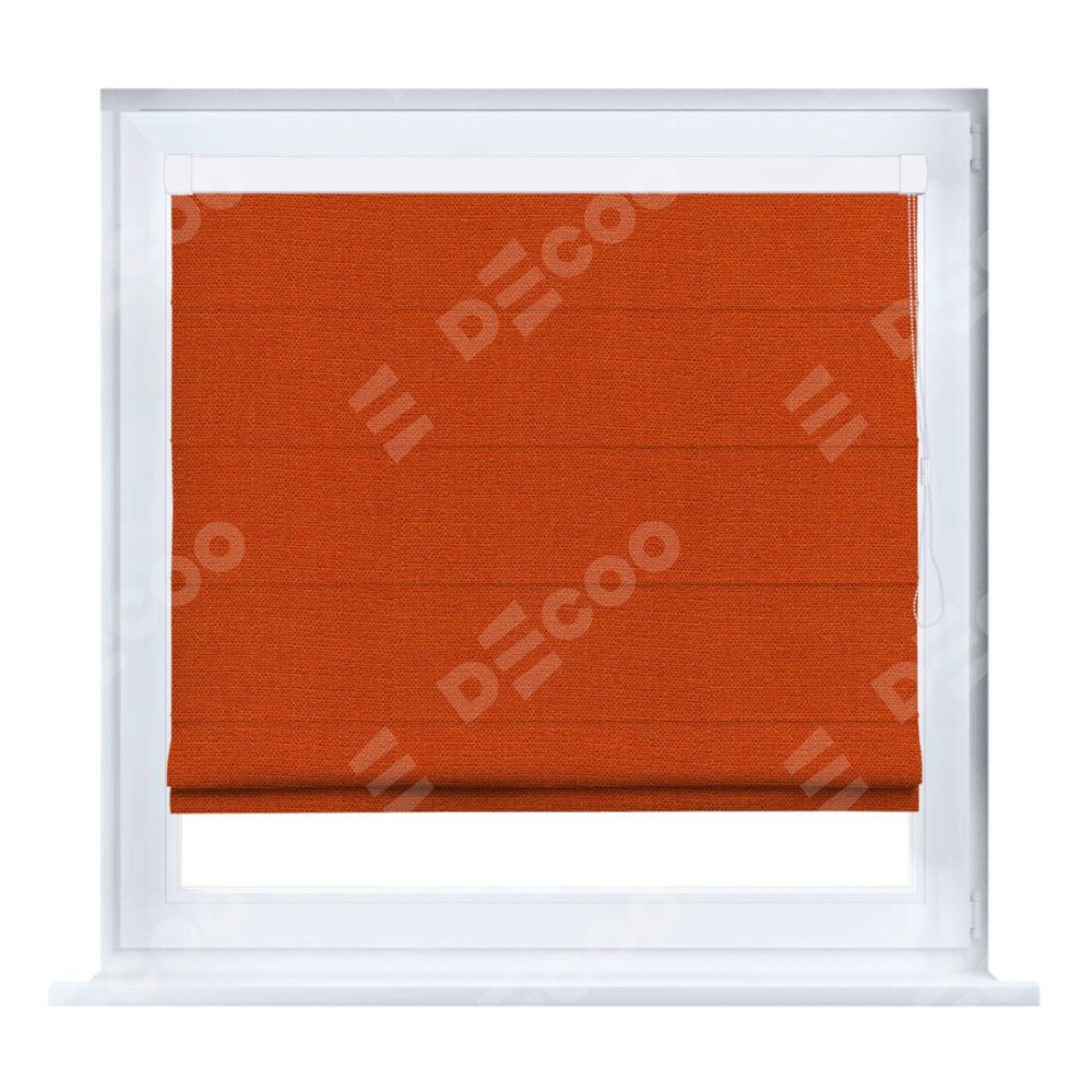 Римская штора производителя «Cortin», устанавливается на створку окна, пошита из ткани лён терракотовый, артикул 53440. Штора шьётся по индивидуальным размерам, для данного типа римской шторы возможная ширина от 35 до 150 см., высота до 250 см.