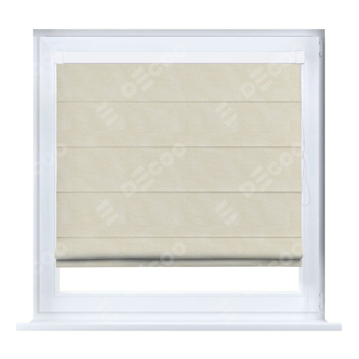 Римская штора производителя «Cortin», устанавливается на створку окна, пошита из ткани лён димаут бежевый, артикул 83023. Штора шьётся по индивидуальным размерам, для данного типа римской шторы возможная ширина от 35 до 150 см., высота до 250 см.