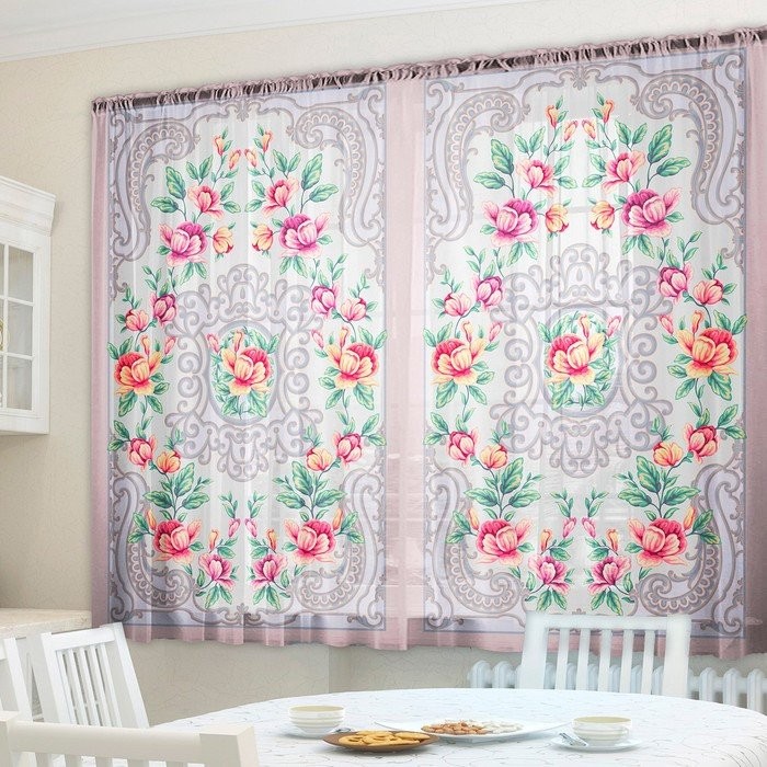 Тюль для кухни Домашний уют 145х160см-2шт, шифон, пэ 100%, 145г/м2