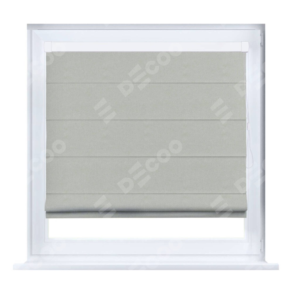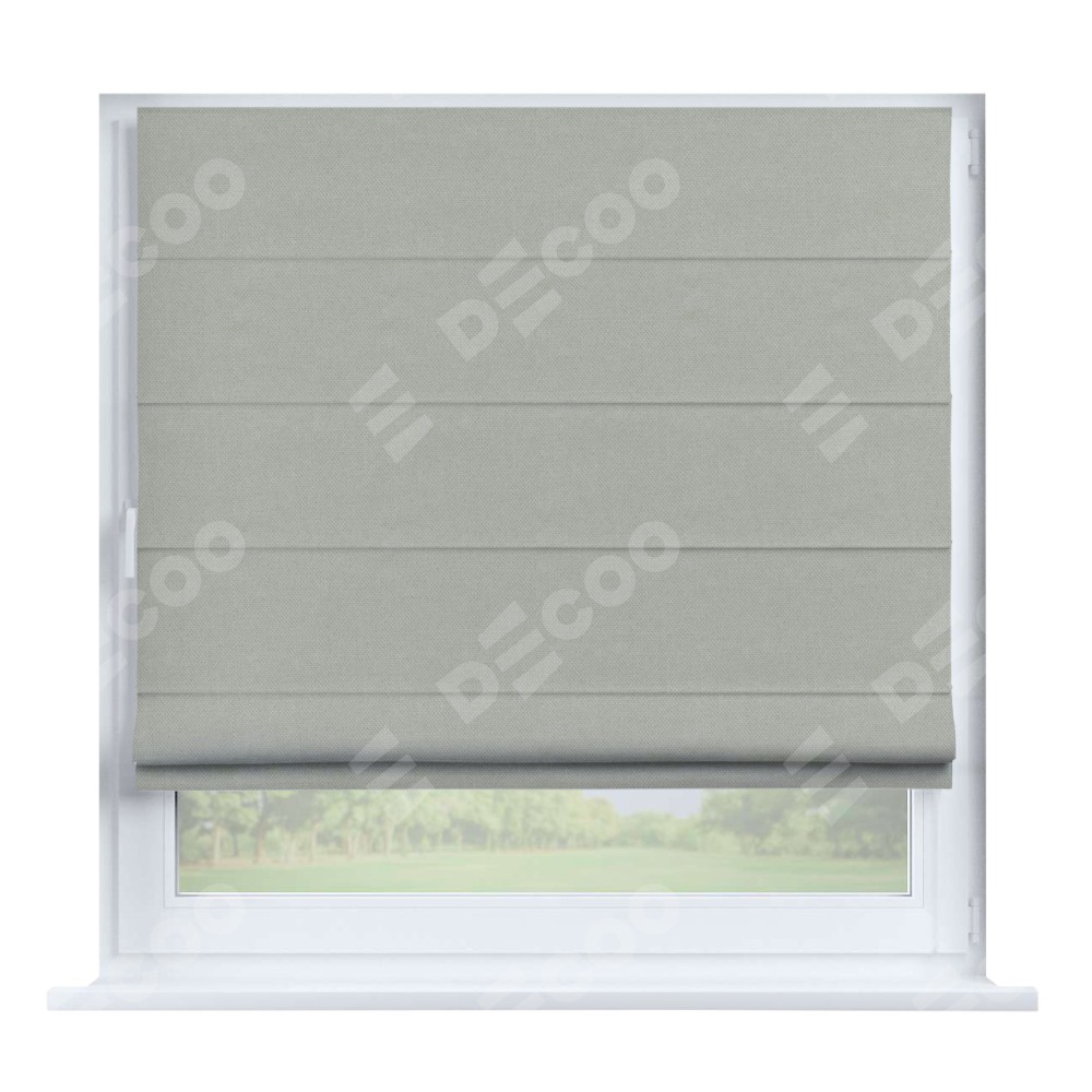 Римская штора производителя «Cortin», устанавливается на створку окна, пошита из ткани лён димаут светло-серый, артикул 83025. Штора шьётся по индивидуальным размерам, для данного типа римской шторы возможная ширина от 35 до 150 см., высота до 250 см.
