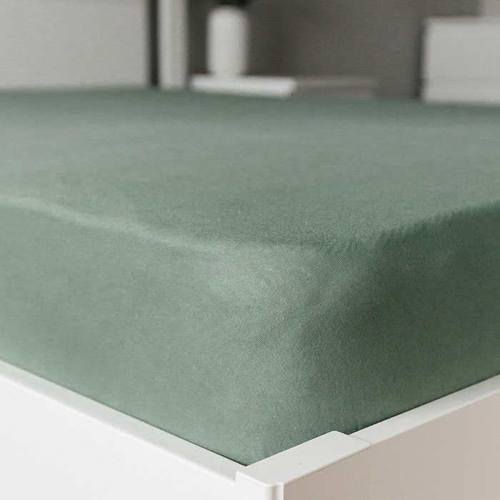 Простыня на резинке трикотажная, размер 200х200х25см, цвет хаки, кулирка 120г/м², 100% хлопок