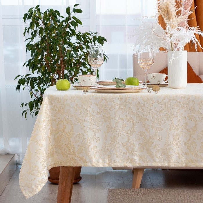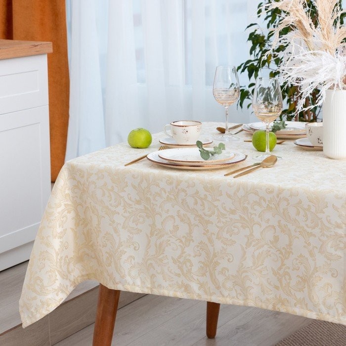 Скатерть Этель «Venzel» цв.золото, 142*283 +/-3 см, 115 ±10 гр,100% п/э