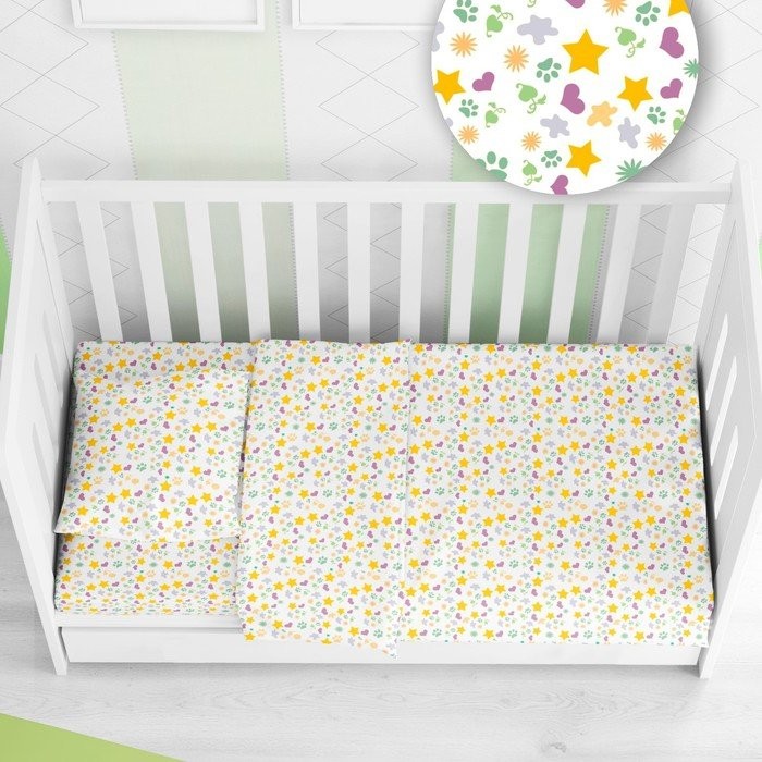 Постельное бельё детский Русский дом «Звездочки и лапки розовый» 112×147, 100×150, 40х60см, бязь, 120 г/м