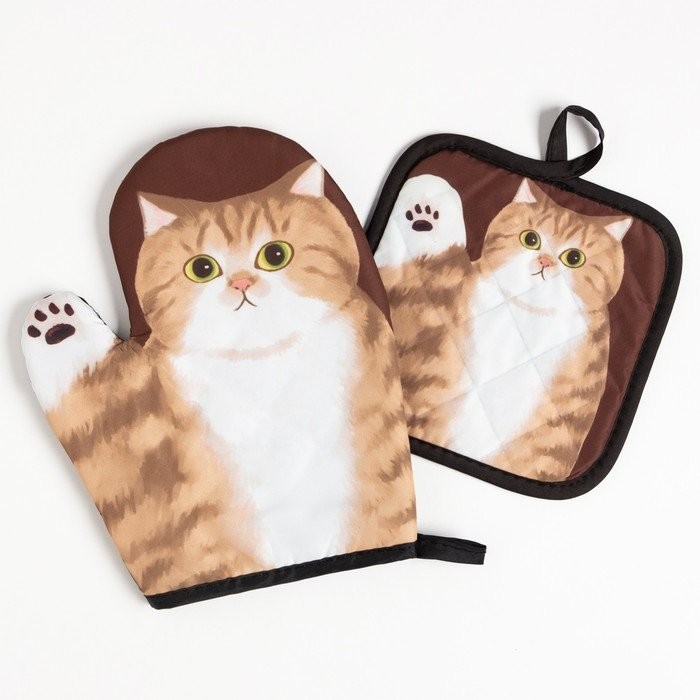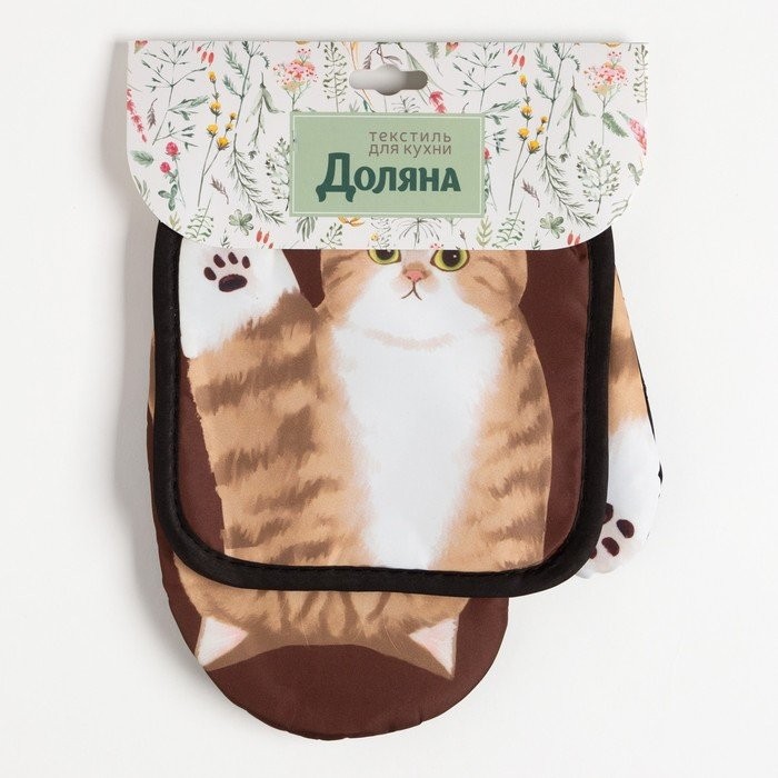 Кухонный набор (2 предмета) Доляна Котики «Муся», прихватка 17×17 см, варежка 24*18 см, 100% п/э