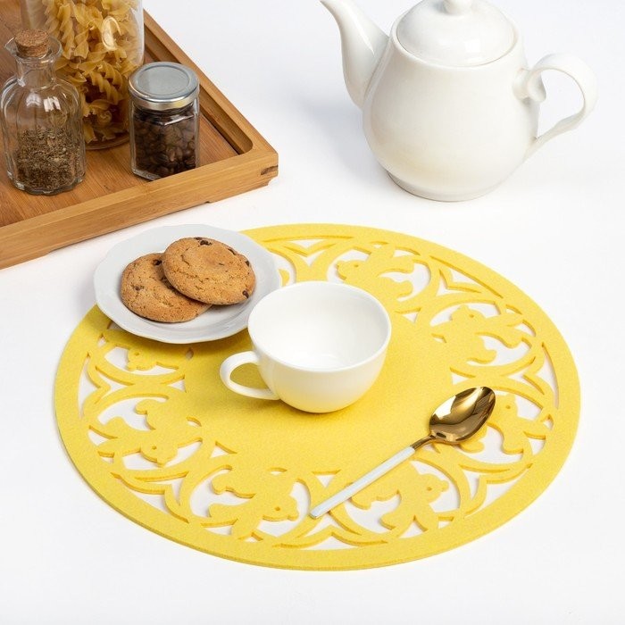 Салфетка декоративная Доляна«Пасха», цвет жёлтый, d 30 см, 100% п/э