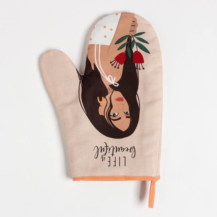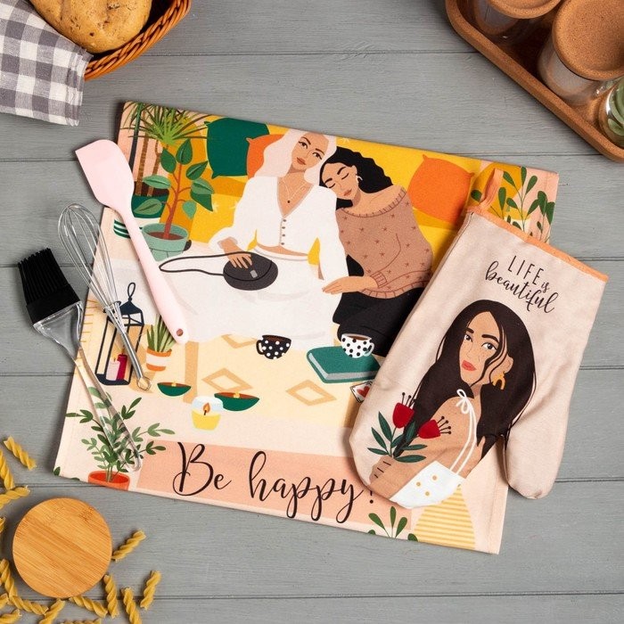 Набор подарочный Life is beautiful: полотенце, варежка-прихватка, кисть, лопатка, венчик