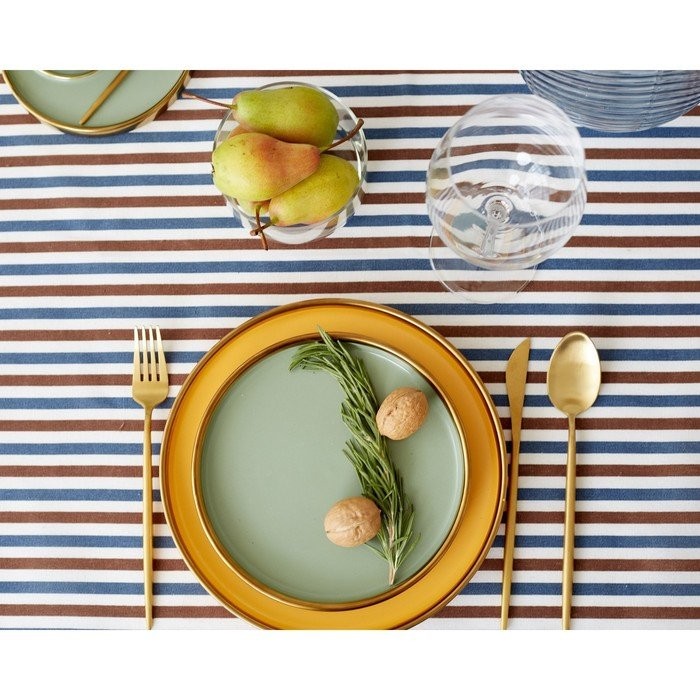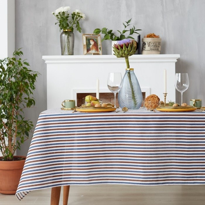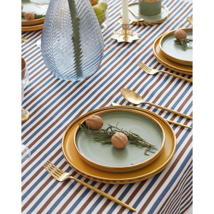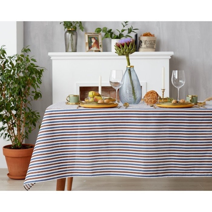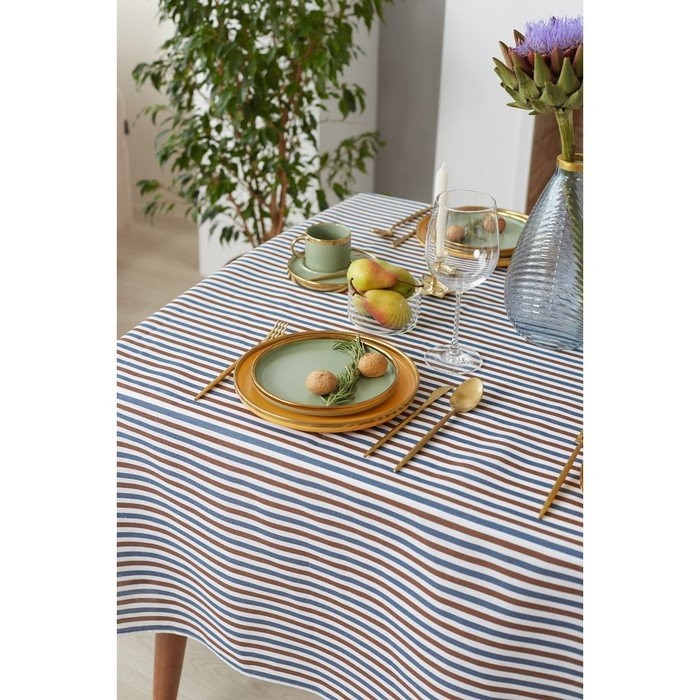 Скатерть Доляна 145х145см, Полоска цв.сине-черный, 100%пэ, рогожка 200 гр/м