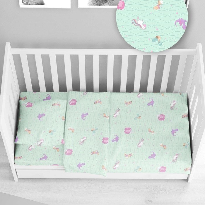 Постельное бельё детский Русский дом «Сказочные зверята бирюза» 112×147, 100×150, 40х60см, бязь 120 г/м
