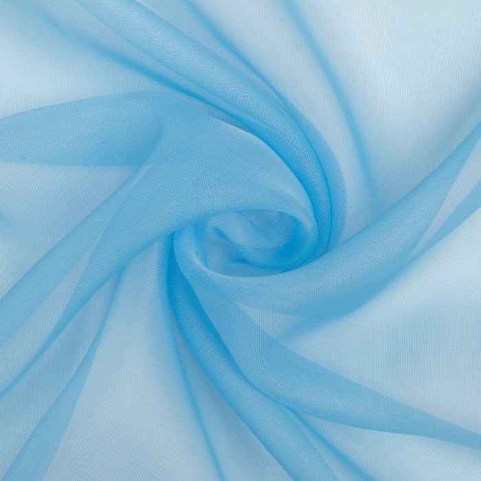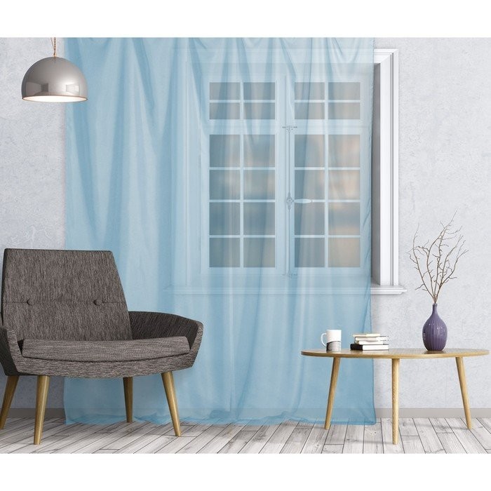 Тюль вуаль на шторной ленте 280×250 см, голубой однотонный