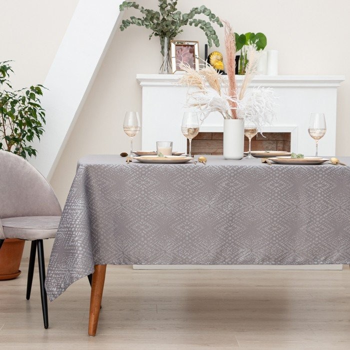 Скатерть Этель «Ромбы» цв.серебро, 142*283 +/-3 см, 115 ±10 гр,100% п/э