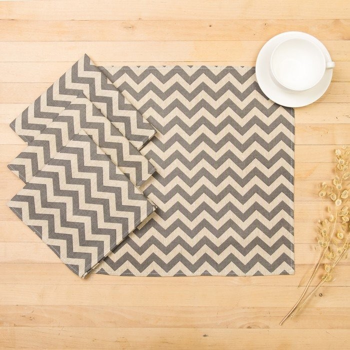 Набор декоративных салфеток Доляна 40х40см 4шт, Зигзаг серый, 100% пэ