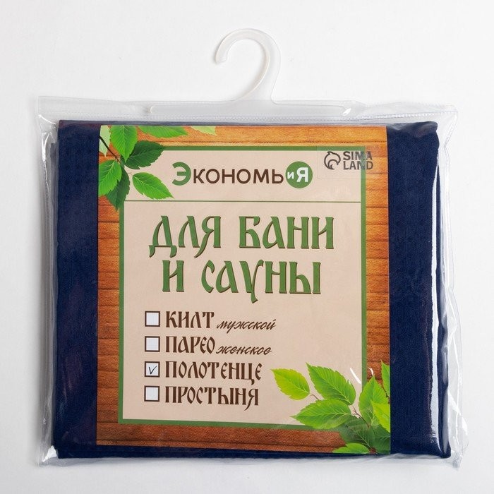 Полотенце для бани Экономь и Я 80×150 см, 100% хлопок, ваф. полотно, т.синий, 200 гр/м2
