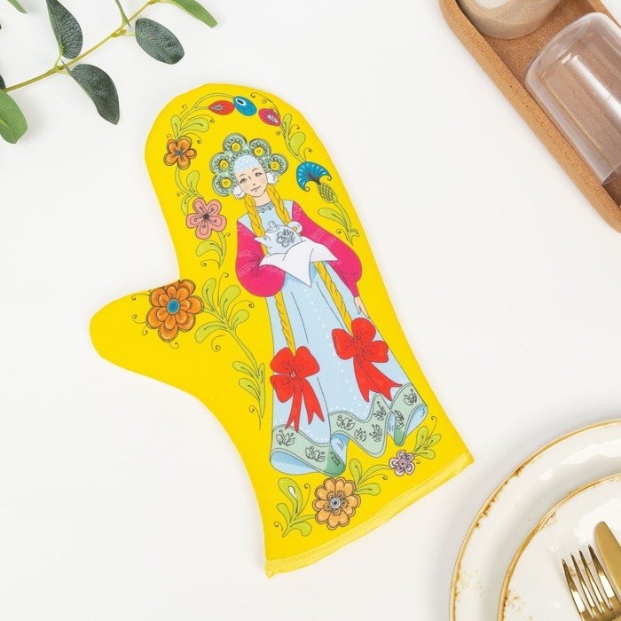 Прихватка-варежка Девица на желтом 30×16 см, 147 г/м2