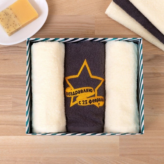 Набор полотенец Экономь и Я «23 февраля» 30*60 см-3шт, 100% хл, 320 г/м2