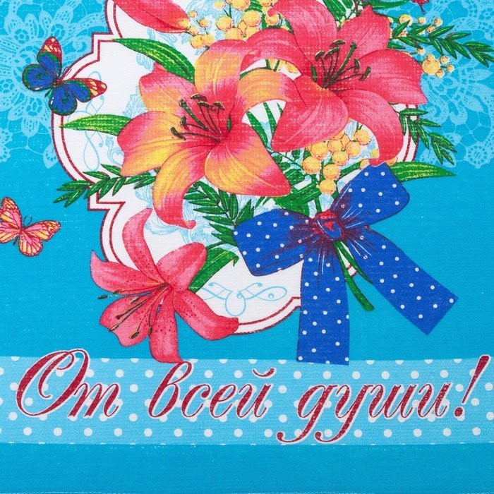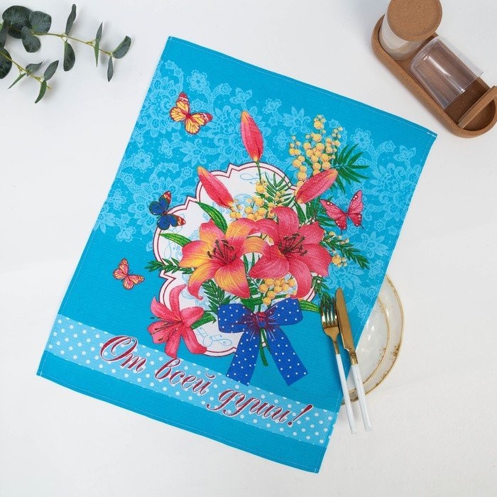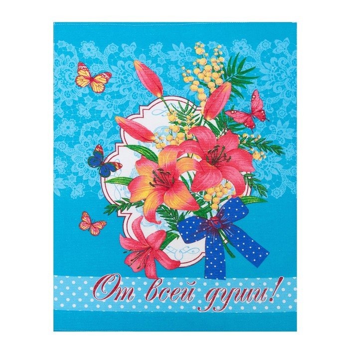 Полотенце 45×60 см, Лилия, бирюза, вафля, 160 гр/м2, хлопок 100%