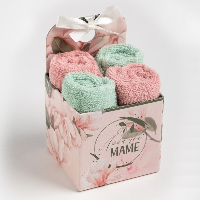 Набор махровых полотенец Этель «Маме» 30×30 см-4шт, 100% хлопок 340 гр/м2