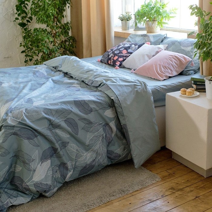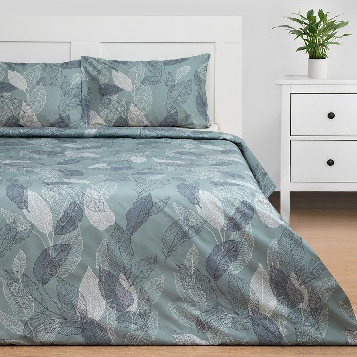 Постельное бельё Этель 2 сп Mint leaves, пододеяльник 175×215 см, наволочки 50×70 см 2 шт, 100% хлопок