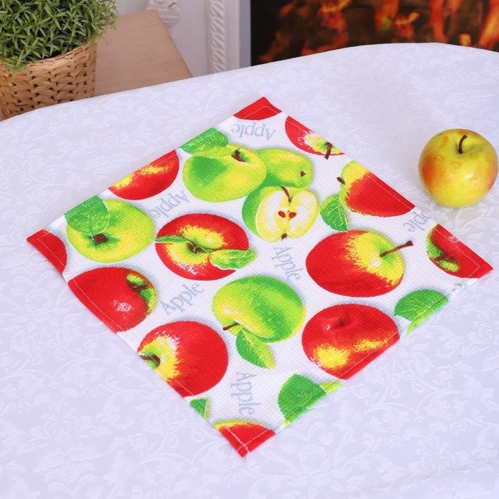 Салфетка для кухни 32×32 см «Яблоки», вафля, хл 100%