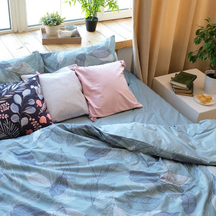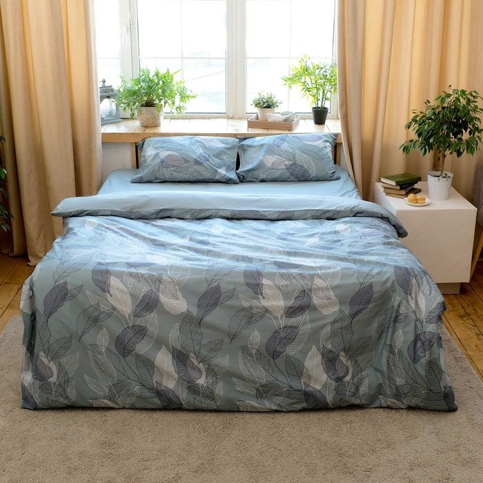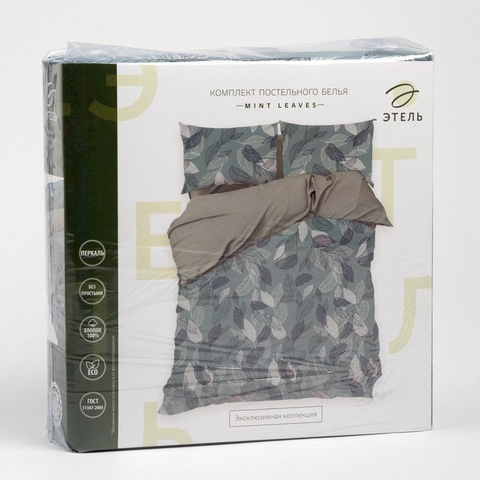 Постельное бельё Этель 1,5 сп Mint leaves, пододеяльник 143×215 см, наволочки 50×70 см 2 шт, 100% хлопок