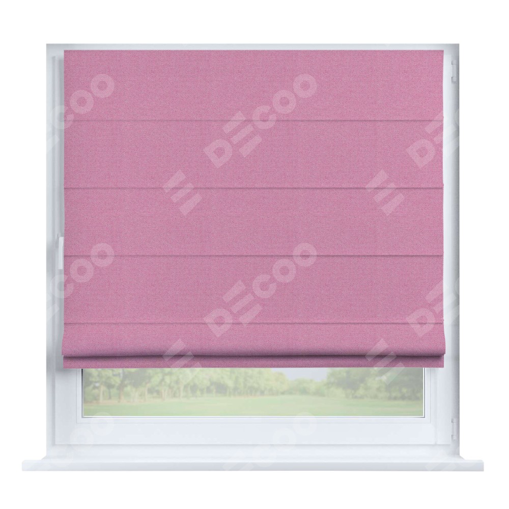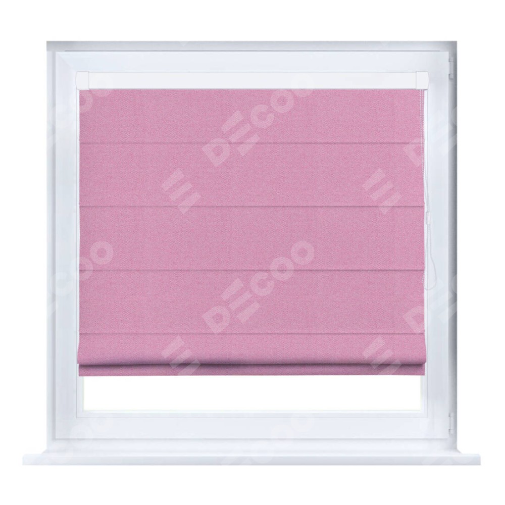 Римская штора производителя «Cortin», устанавливается на створку окна, пошита из ткани лён димаут розовый, артикул 16257. Штора шьётся по индивидуальным размерам, для данного типа римской шторы возможная ширина от 35 до 150 см., высота до 250 см.