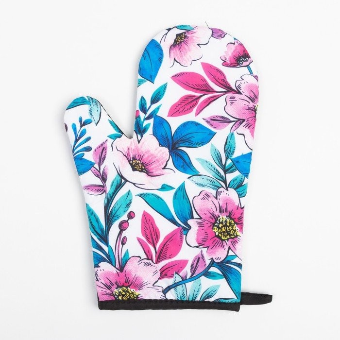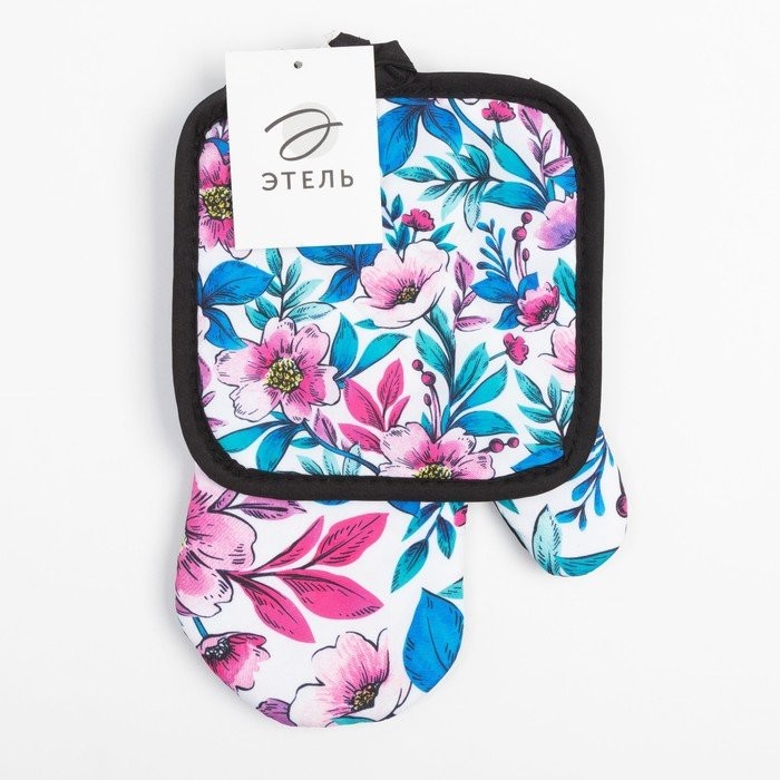 Кухонный набор (2 предмета) Этель «Цветы», прихватка 17×17 см, варежка 26×16 см, 100% п/э