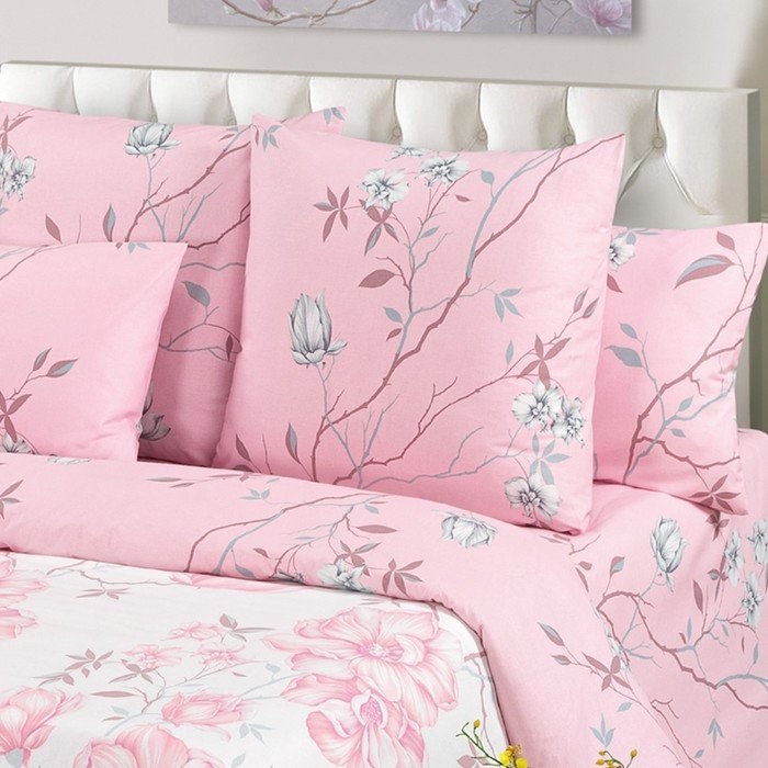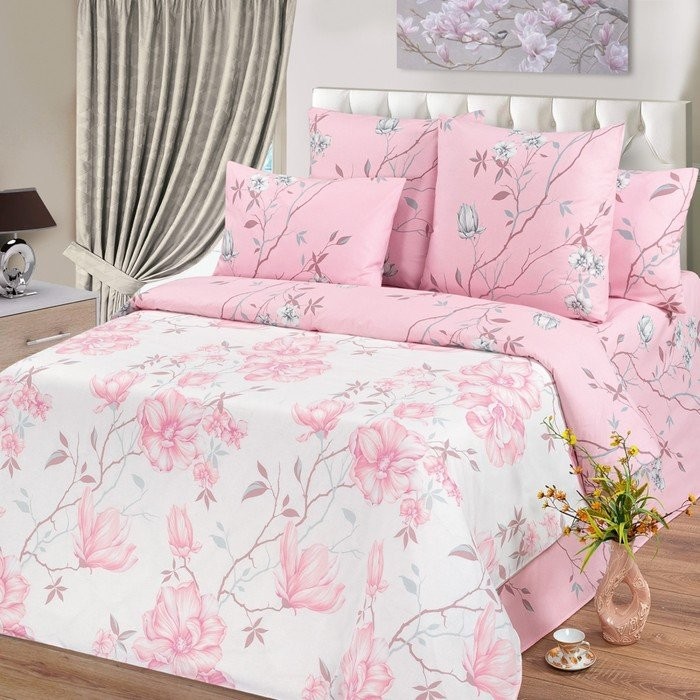 Постельное бельё евро Миланика Магнолия 200х217см, 217×240 см, 70х70см 2 шт, поплин 117г/м, хлопок 100%