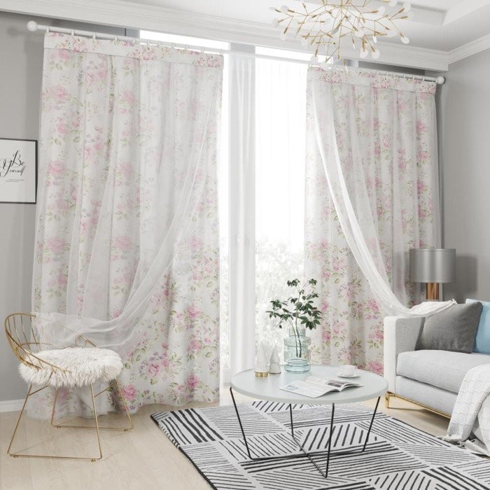 Комплект штор с тюлем на шторной ленте, размер 145×260 см, 2 шт, подхват 2 шт