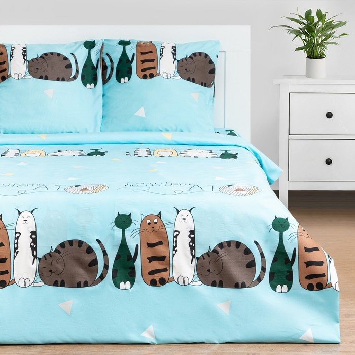 Постельное бельё Экономь и Я Евро Cats 200х210см,220х215см,70х70см-2 шт