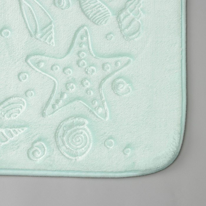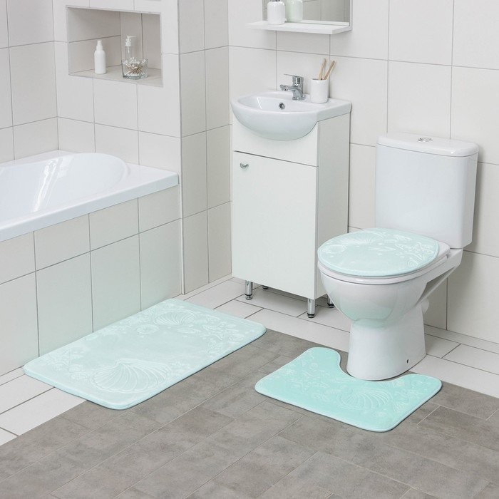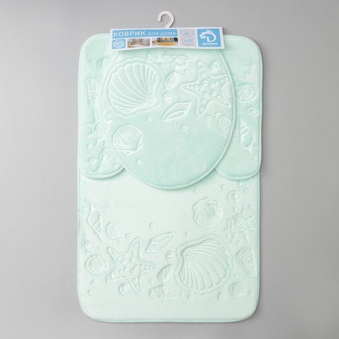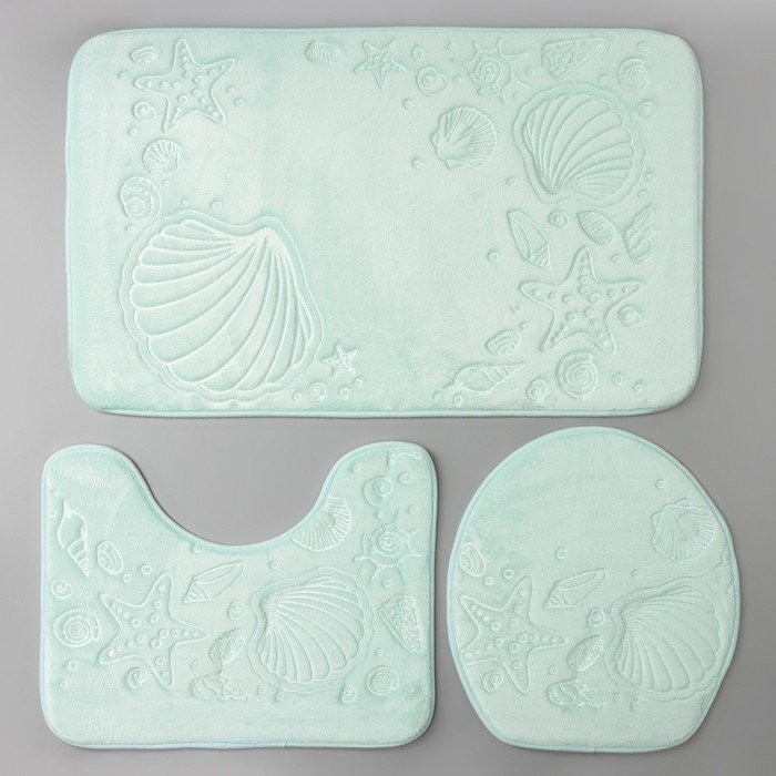 Набор ковриков для ванны и туалета Доляна «Морское дно», 3 шт: 50×80, 50×40, 38×43 см, цвет бирюзовый