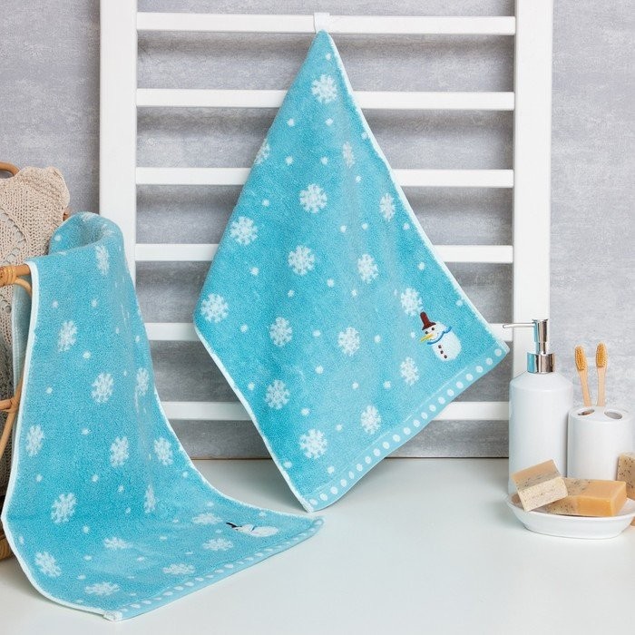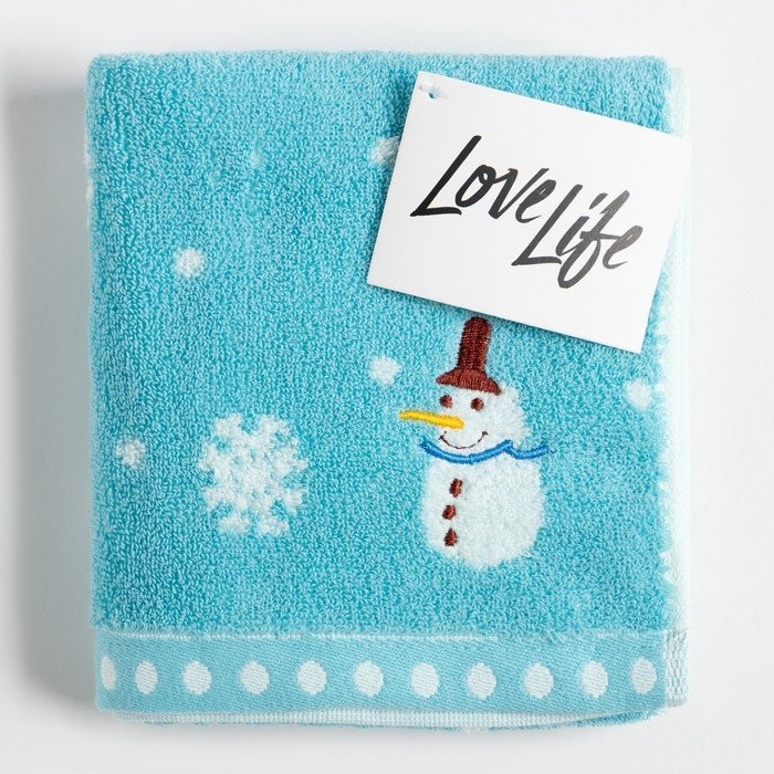 Полотенце махровое LoveLife «Снеговик» 35*75±3 см, цв.голубой, 100% хлопок, 350 г/м2