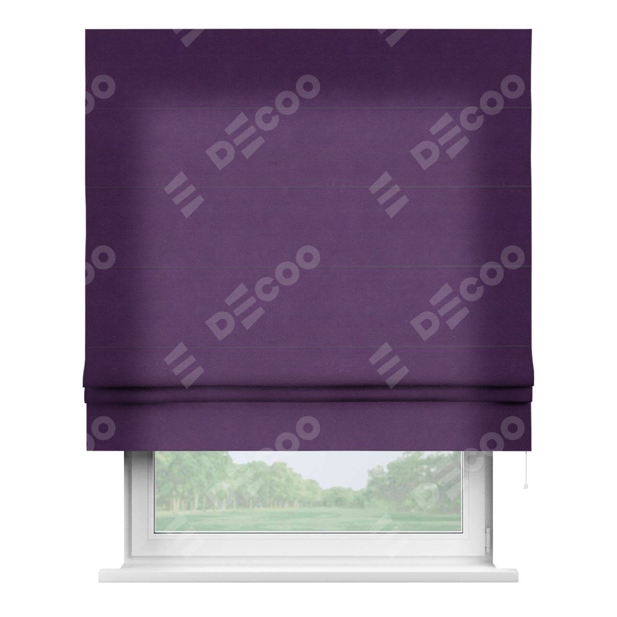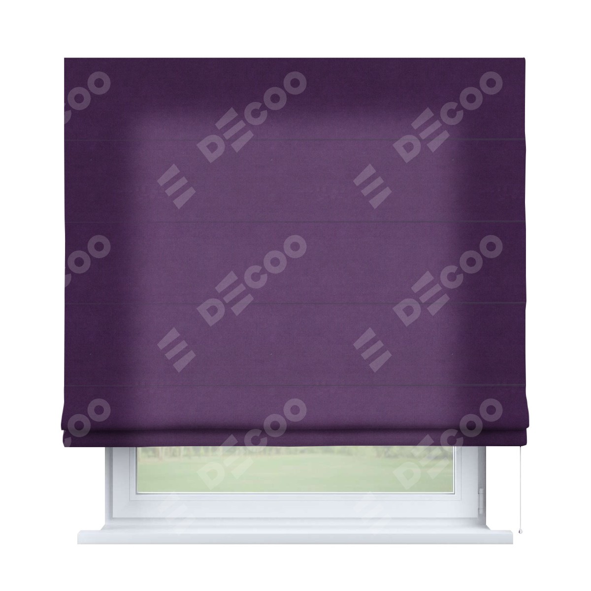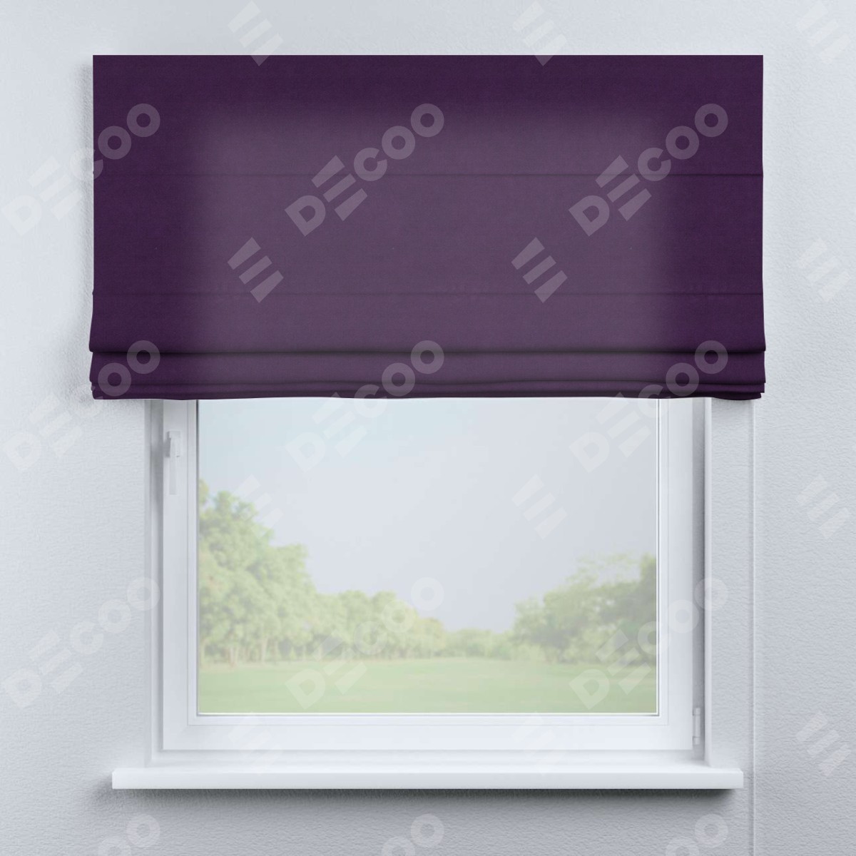 Римская штора производителя «Cortin», используется для проёма, пошита из ткани вельвет тёмно-фиолетовый, артикул ткани 17753. Имеет универсальный механизм и подходит для монтажа: на потолок, на стену и в нишу.