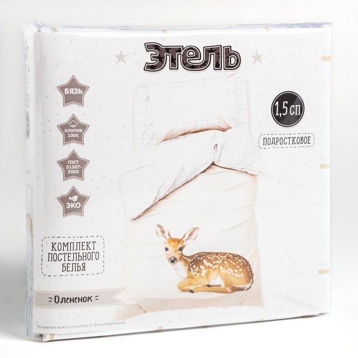 Постельное бельё «Этель: Олененок», 1.5 сп., 143×215 см., 150×214 см., 50×70 см. — 1 шт., 100% хл., бязь