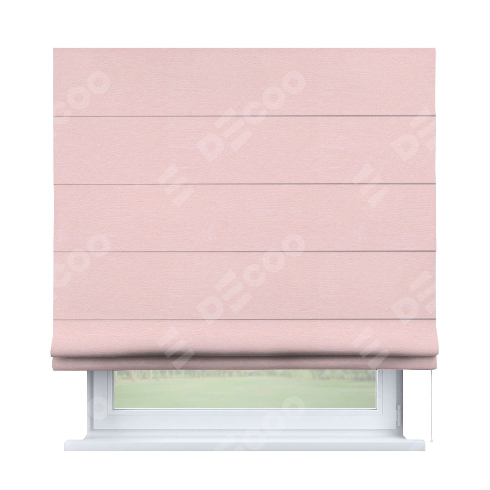Римская штора производителя «Cortin», используется для проёма, пошита из ткани блэкаут однотонный розовый, артикул ткани 83046. Имеет универсальный механизм и подходит для монтажа: на потолок, на стену и в нишу.