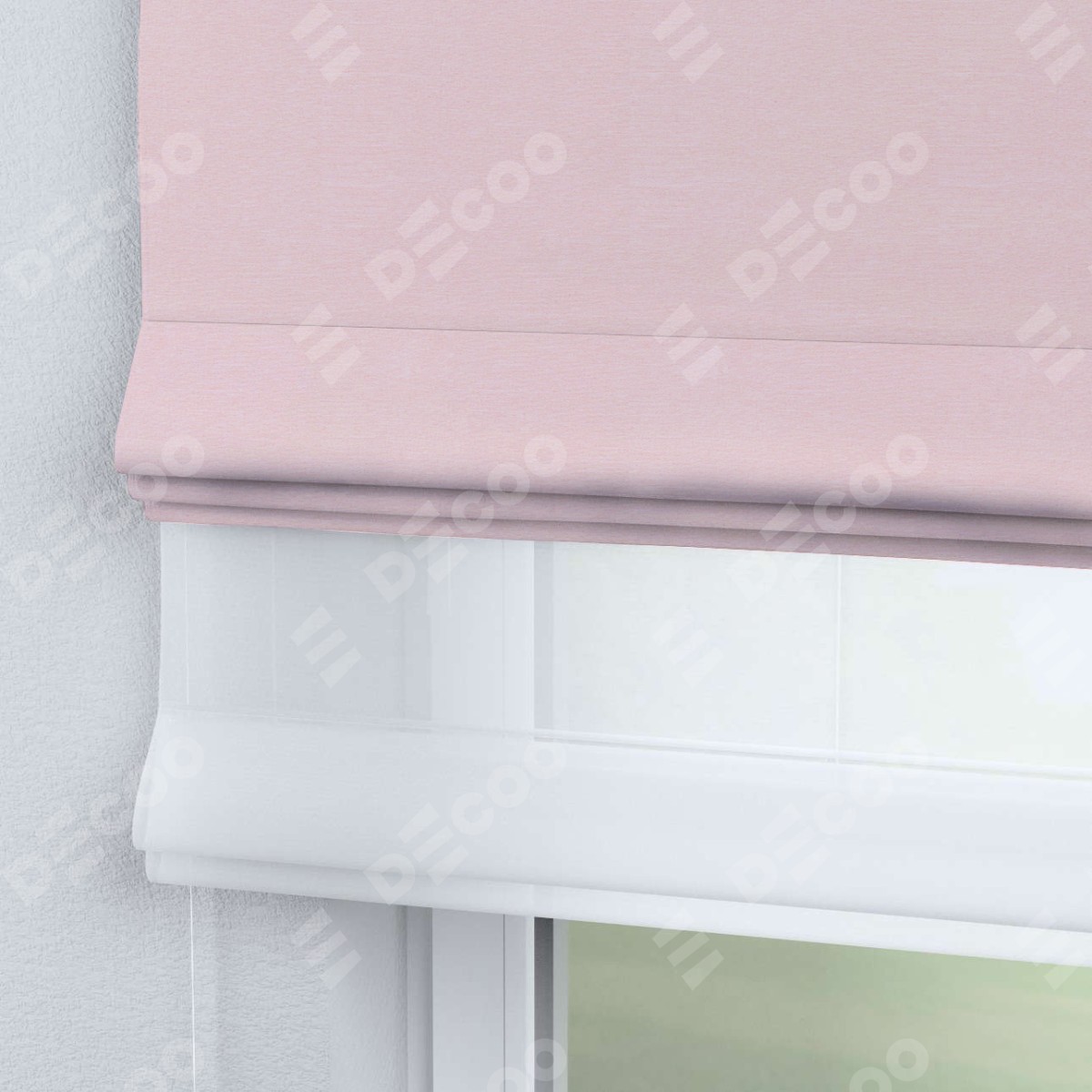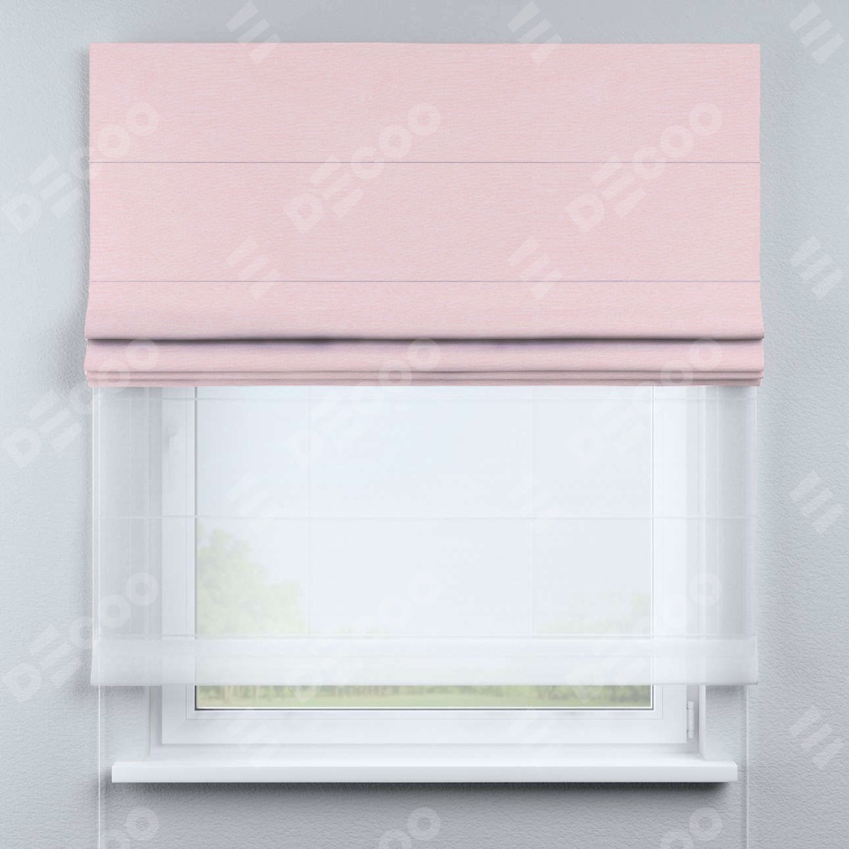 Римская штора день-ночь производителя «Cortin», используется для проёма, пошита из двух полотен, с лицевой стороны блэкаут однотонный розовый артикул 83046, вторая ткань тюль (по стандарту комплектуется тюль белого цвета артикул V-01). Имеет универсальный механизм и подходит для монтажа: на потолок, на стену и в нишу.