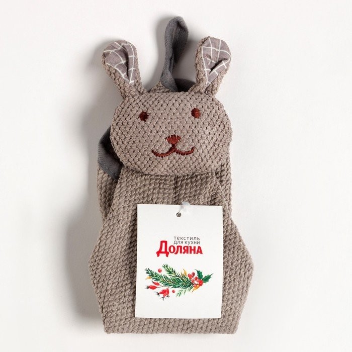 Полотенце кухонное Доляна «Заяц», цв. серый 30*30 см 280гр/м2