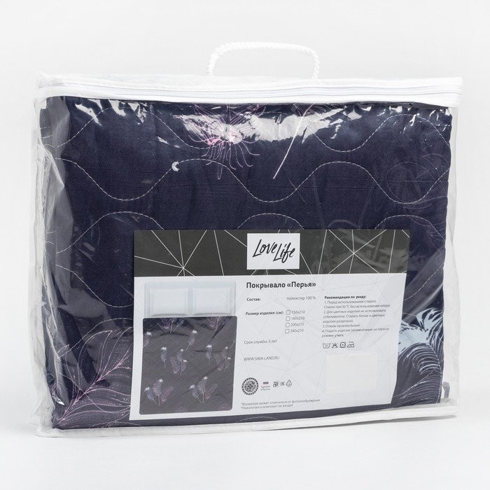 Покрывало LoveLife евро «Перья» 200*210±5 см, новосатин,80 г/м2