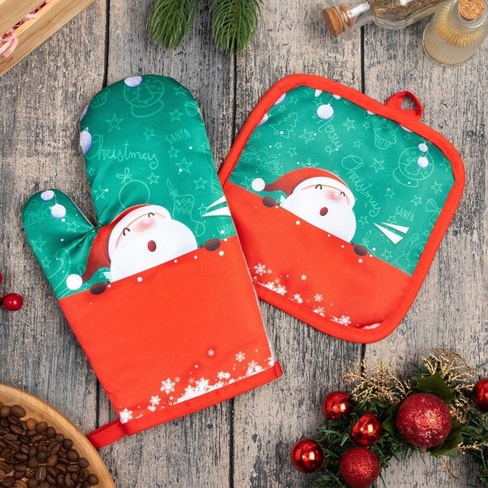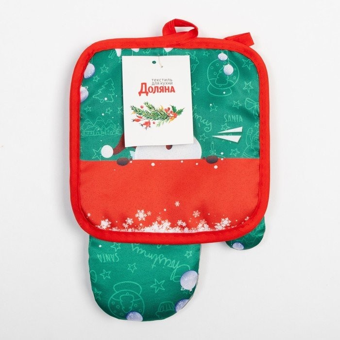 Кух. набор 2 пр. Доляна «Дед мороз» прих. 17*17 см, вареж. 26*16 см,100% п/э