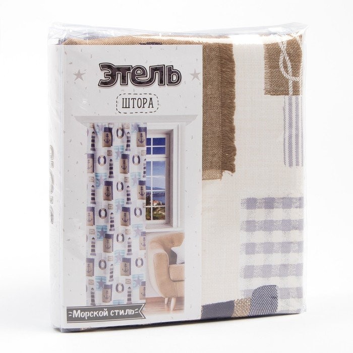 Портьера Этель «Морской стиль» без держателя, цвет синий, 170×260 см, блэкаут, 100% полиэстер