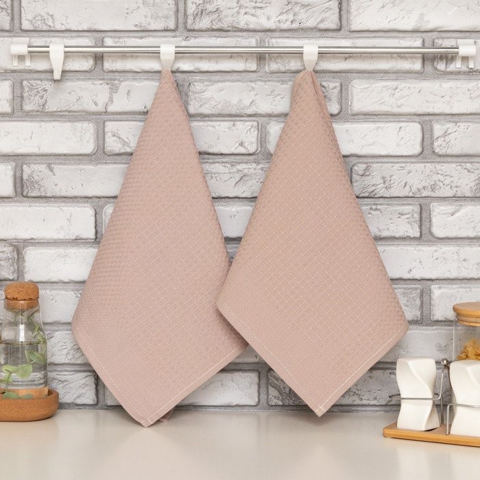 Набор кухонных полотенец Доляна, цвет коричнево-серый, 35х60см-2шт, 100% хл, вафля, 220 гр/м2