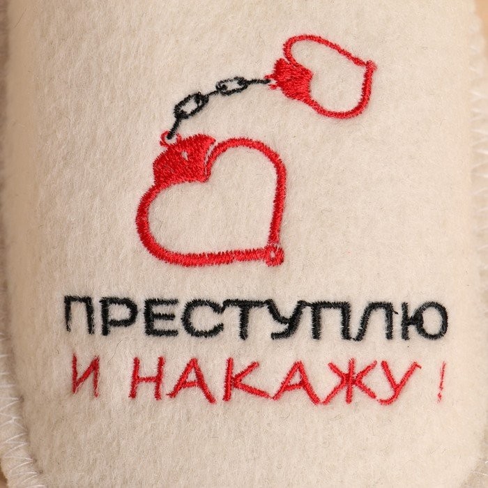 Тапочки для бани белые с вышивкой «Преступлю и накажу» женские (26 см внутр. стелька)