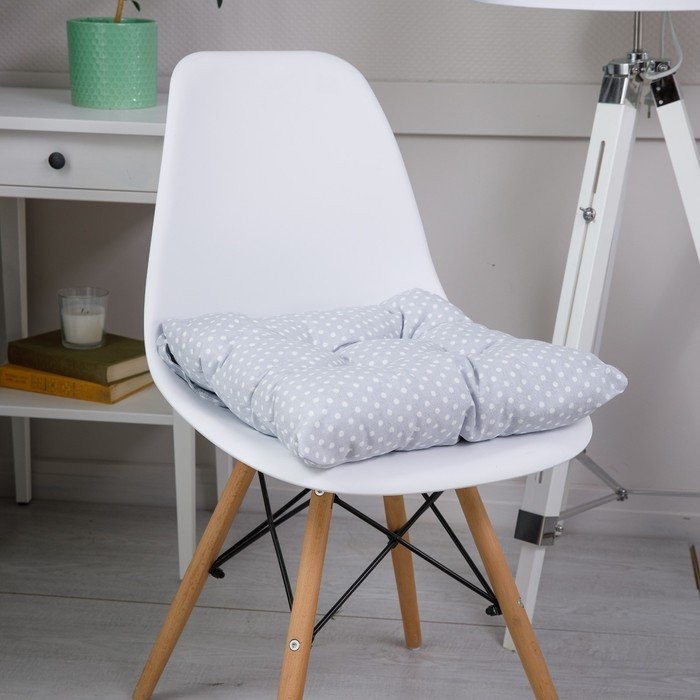 Подушка на стул Горошек 40х40см, рогожка, 150 г/м2, холлофайбер