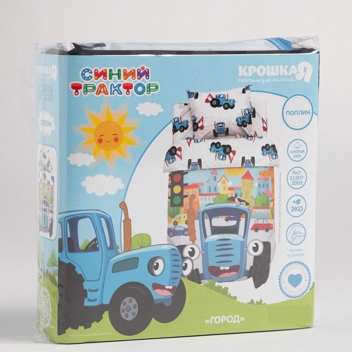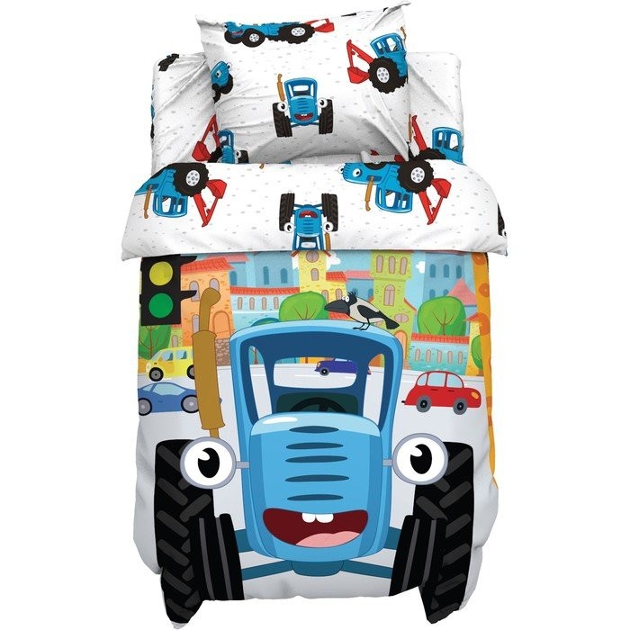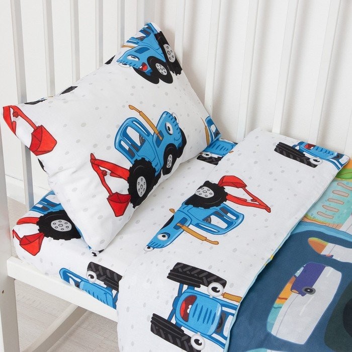 Постельное бельё Синий трактор «Город» 112×147 см, 60×120+20 см, 40×60 см, 100% хлопок, поплин 125г/м2