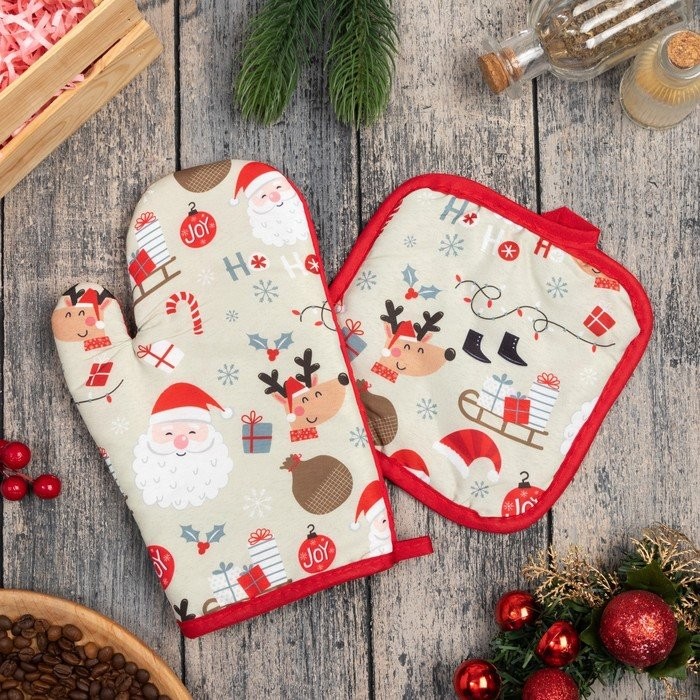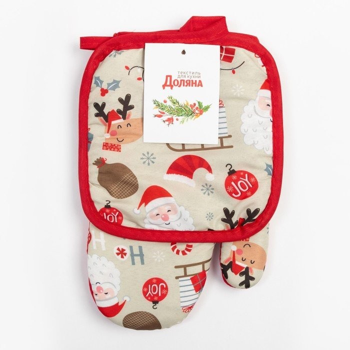 Кух. набор 2 пр. Доляна «Санта» прих. 17*17 см, вареж. 26*16 см,100% п/э