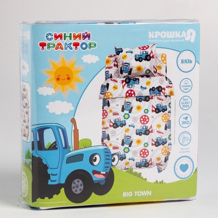 Постельное бельё Синий трактор «Big Town» 112×147 см, 60×120+20 см, 40×60 см, 100% хлопок, бязь 125 г/м2