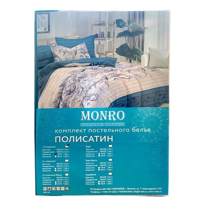 Постельное бельё Monro 1,5сп, 150×210, 150×210, 70х70см 2шт полисатин 80г/м, пэ100%