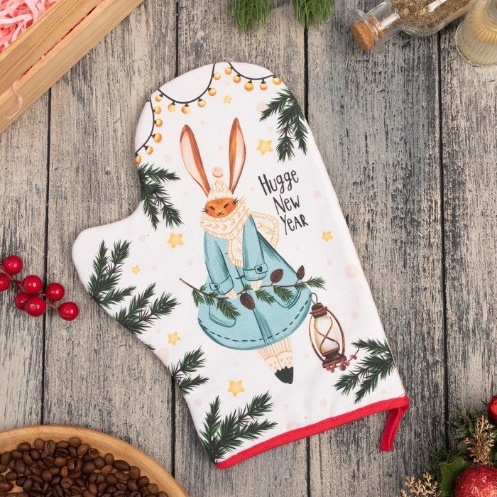 Варежка-прихватка «Hugge New Year» 20×28 см, саржа, 100% х/л, ватин 250 г/м2